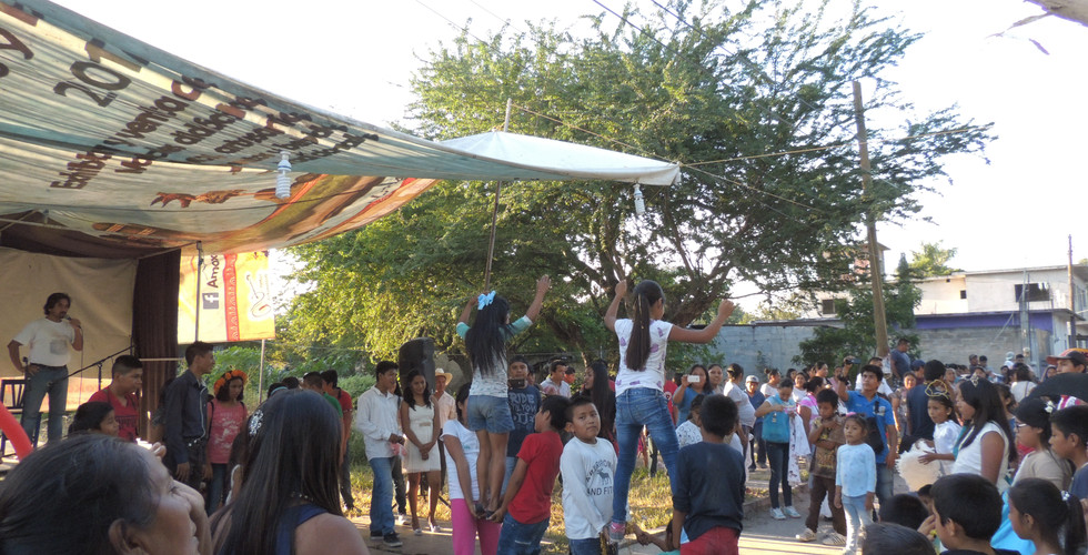 El juego, el baile y la fiesta son elementos en las Jornadas Culturales Netemachilispan” (Tiempo de Esperanza)”, una experiencia que forma a los niñxs y lxs jóvenes con un sentido de pertenencia y arraigo a su territorio. Desde hace más de siete años en la comunidad de Xoxocotla, el Colectivo Yankuik Kuikamatilistli ha multiplicado y generado espacios para la reflexión y el diálogo. Las actividades plástico-artísticas y lúdicas que implementan en los talleres de las Jornadas Culturales permiten circular la voz, el sentir y pensar de lxs niñxs, lxs jóvenes y de todxs los habitantes de la comunidad.